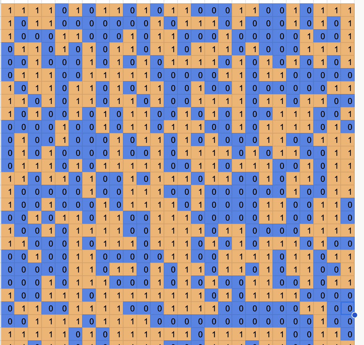 I guarantee to you that that is random, but it sure looks like there are some patterned groupings in there. It doesn't look random even though it absolutely is. Like, look at that row of twelve zeroes near the bottom! That's a 1 in 4096 chance of occurring, but it's right there.