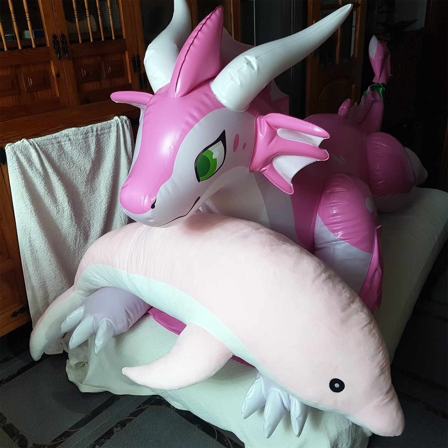 Deerise@Deerisabeth1/29/2024, 10:39 AM Day 409: They got a hold of the stash of dolphins. Jan. 29 '24 #inflatable#dragon#plush#dolphin#pooltoy#cerisey#josie dolphinsee all