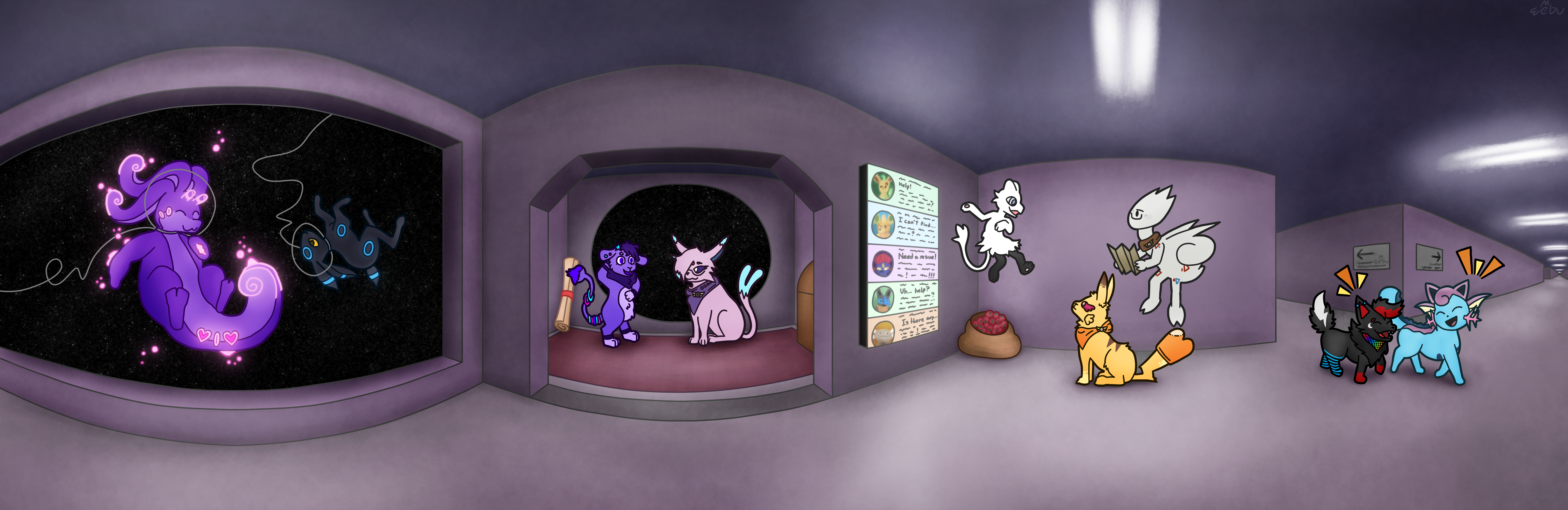 first multi-character attack! had the idea when seeing the theme announced that a space-themed Pokemon Guild in the theme of the Pokemon Mystery Dungeon series would be cool! i looked around and had bookmarked Pokemon characters (some explicitly PMD, some not, but ones that I thought would fit) and tried my paw at it!