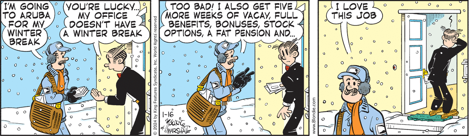Geight@Geight1/16/2024, 6:41 PMSugar Meowth@dosmeowSugar Meowth@dosmeow1/16/2024, 5:53 PM Another day another Blondie strip about the benefits of unionizing your workplace.
