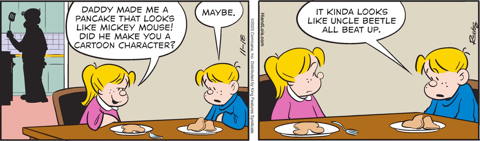 oh yeah no I'm aware of that, but: his answer to "does your pancake look like a cartoon" is "maybe; it looks like uncle beetle". which makes me wonder if they're thinking of him as a cartoon character ALSO. I know that's probably not how they meant it, but I'm enjoying the existential angle of it.