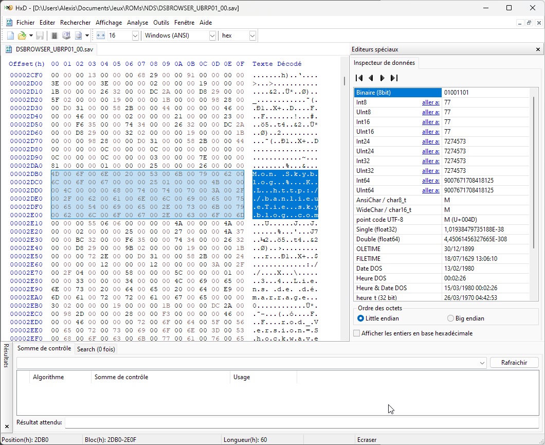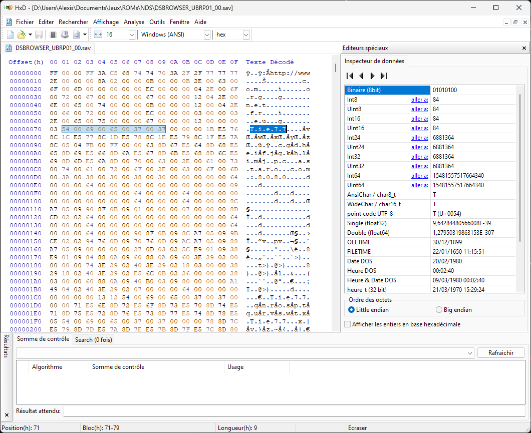 I used my 3DS to extract the save file and opened it up on my computer with a hex editor. And right at the beginning of the file, there it is: what I assume to be the password, stored in cleartext (obviously no encryption needed! You’re not supposed to be able to access save file like this, thought the fools at Big N back in the 2000s). So "Tie77" it is