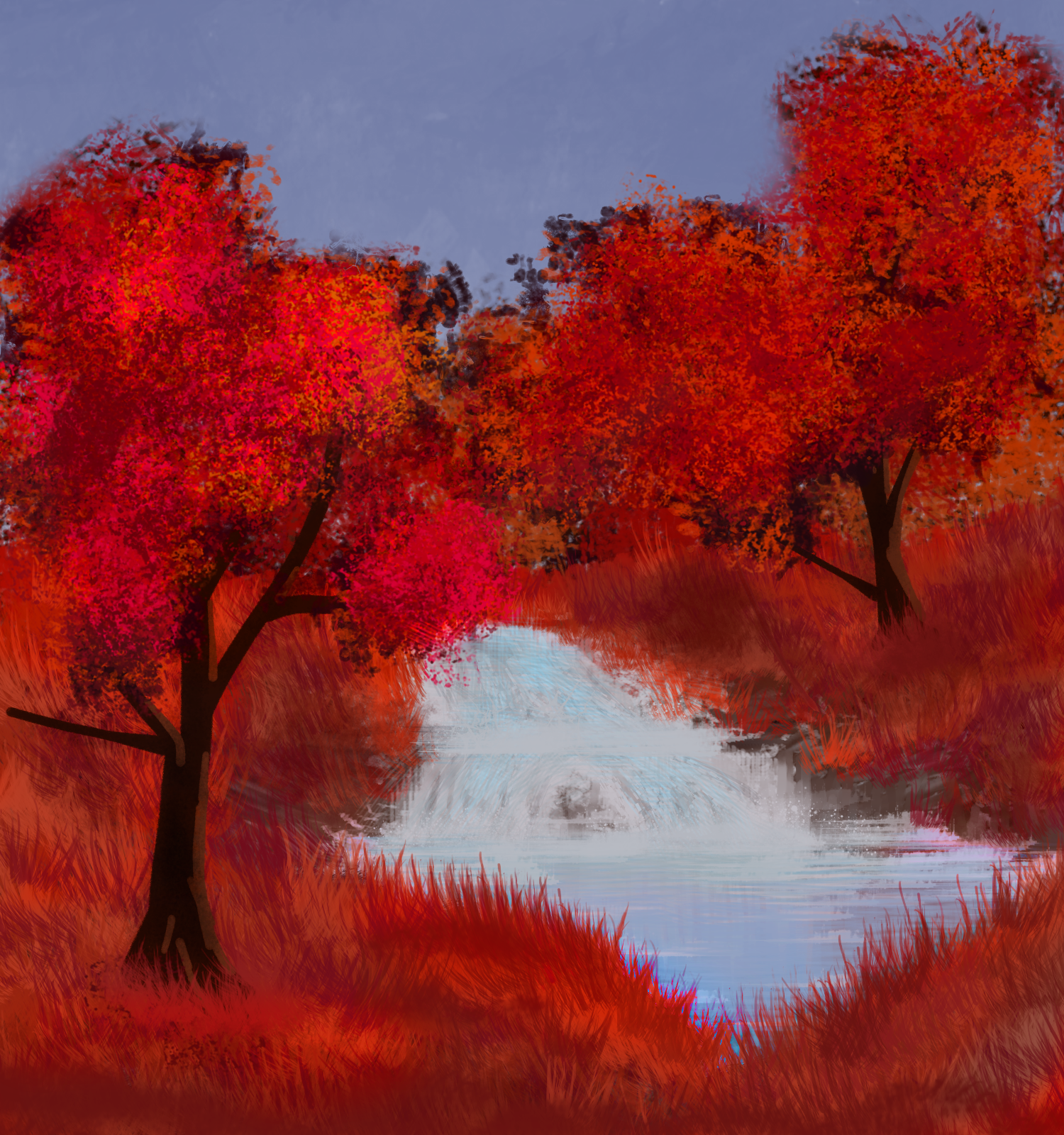 this one is supposed to be autumn on notasami; this star is G0 class; closer to the sun, but it skews slightly toward blue so deciduous trees switch to a blue pigment instead of a yellow one as winter approaches.