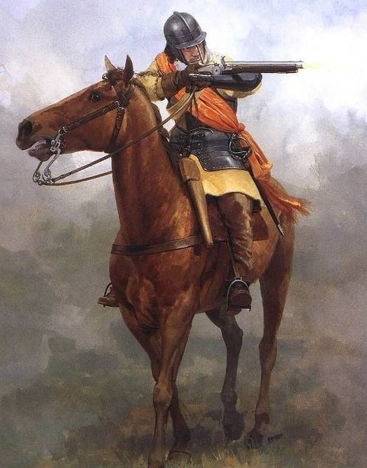 *So "Reiter" here literally just means "Rider" in german, but has become associated with a specific type of cavalry in English. In German, they would say "German Rider" or "Black Rider" to indicate this role. But in English, that cavalry type just transferred over as "Reiter". Similar for "Ruyter" as a dutch version. A lot of terminology here is very specific to time and place. A word may mean one type of regiment in the late 1500s in X location, mean something else elsewhere, and mean something else in the mid 1600s or something, and the way words crossed languages is funky like with "Reiter".