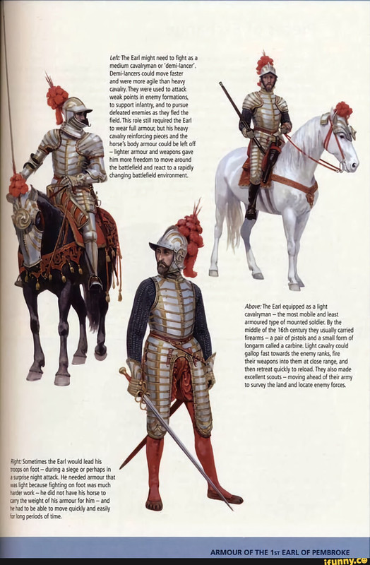 Pistoleer / Reiter*: So, this is sort of the "generic" category for cavalry in a lot of the 1500s and 1600s. They focused on pistols and also had swords, and they ranged from fully armored(thus "black reiters" with full black armor), to being armored as much as cuirassiers, to sometimes no armor. They'd use hit and run tactics, including more involved ones like the caracole(TRANSLATION: snail. thats all you get). The swords would come out when their shock role/chasing role became relevant, otherwise they defaulted to safer medium ranged harassment.