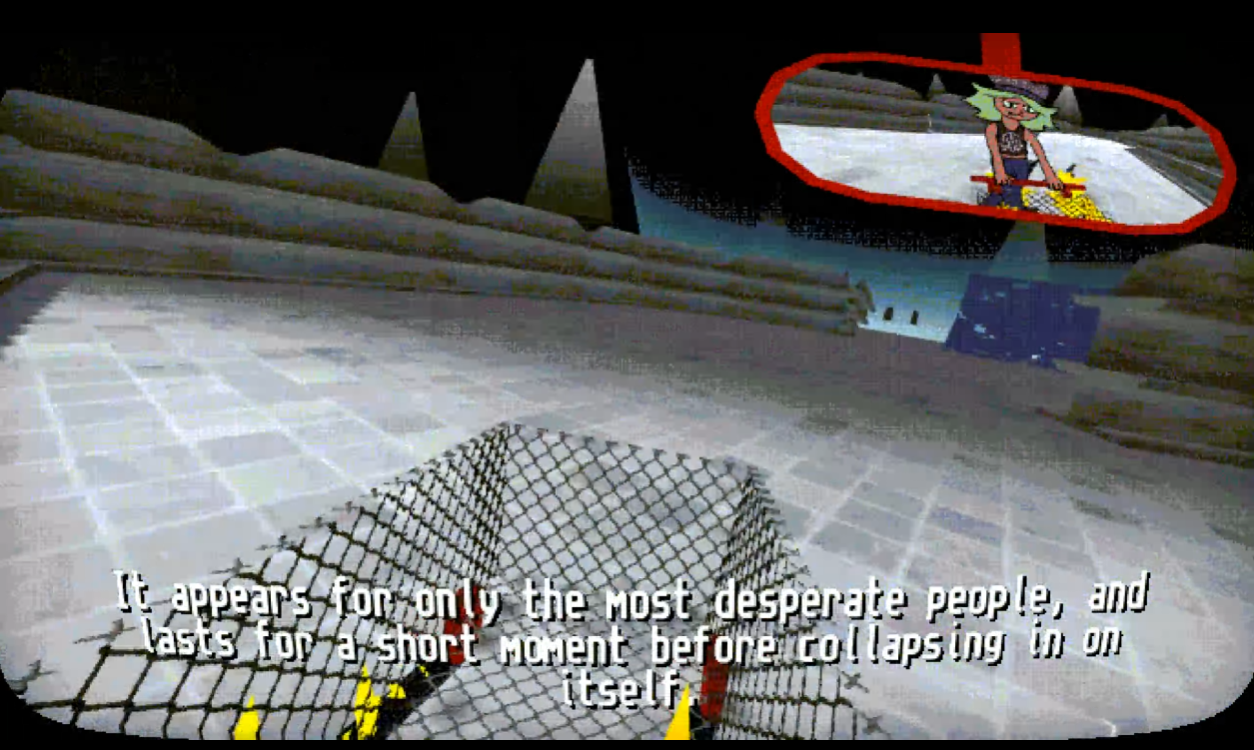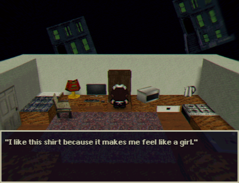 SWOLLEN TO BURSTING was fun. Bizarre and charming places to explore & distressing secrets to find. I like how it blends meander-around-the-town gameplay with Yume Nikki sort of exploration and effects. Also I'm a big fan of the music. I like how it has the lofi sound which matches the early 3d look of the game.