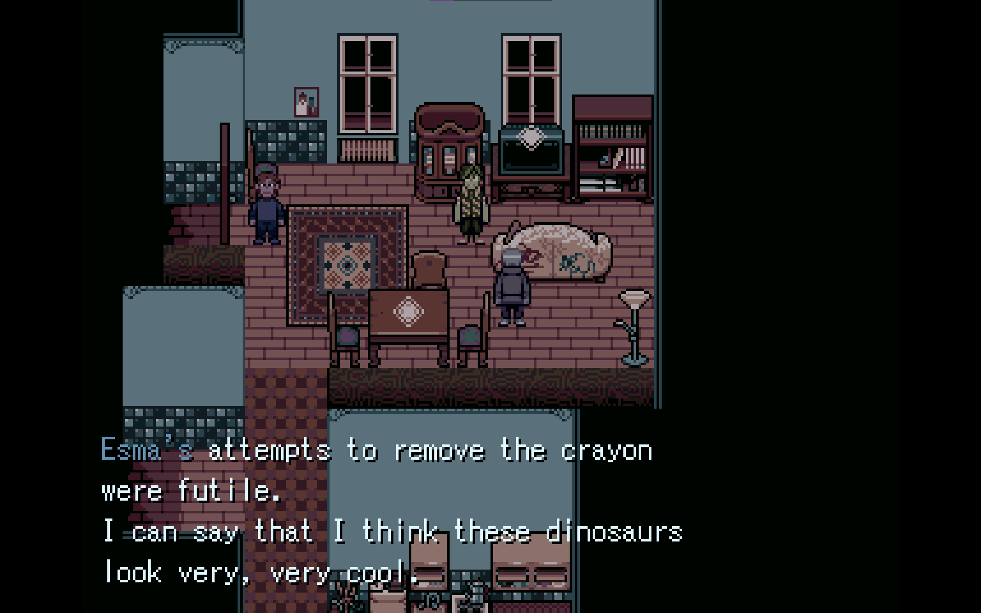 I wish I could unwrap a lot more of what I like about this game than I can without spoiling too much. But if I could, I'd probably go on for too long. Let me attempt to be succinct & not giving too much away. You can tell pretty early on that An Outcry is about taking action when necessary & not turning a blind eye. What it explores about player vs protagonist agency is very fascinating to me as well, and I enjoyed learning about the inspirations for why the game's narrative works the way it does. The character Anne is such a sweetie and I love her a whole lot. This game has a very tangible feeling, this apartment complex is dirty and crumby, it smells of smoke, and there's a surrounding desperation you can feel.