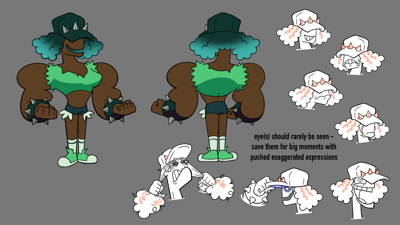 My previous experience is in TV animation as a Production Coordinator and while most of current portfolio is tuned toward design jobs in tv animation I'm very open to work in other industries, like tabletop & video games, as well. I can adapt to fit a pretty wide range of styles, I'm currently located in Los Angeles but am happy to work remotely, and the most important thing to me is helping create a safe, supportive, and healthy work environment for everyone involved. Uh oh also I'm a queer trans woman if that means anything lol.