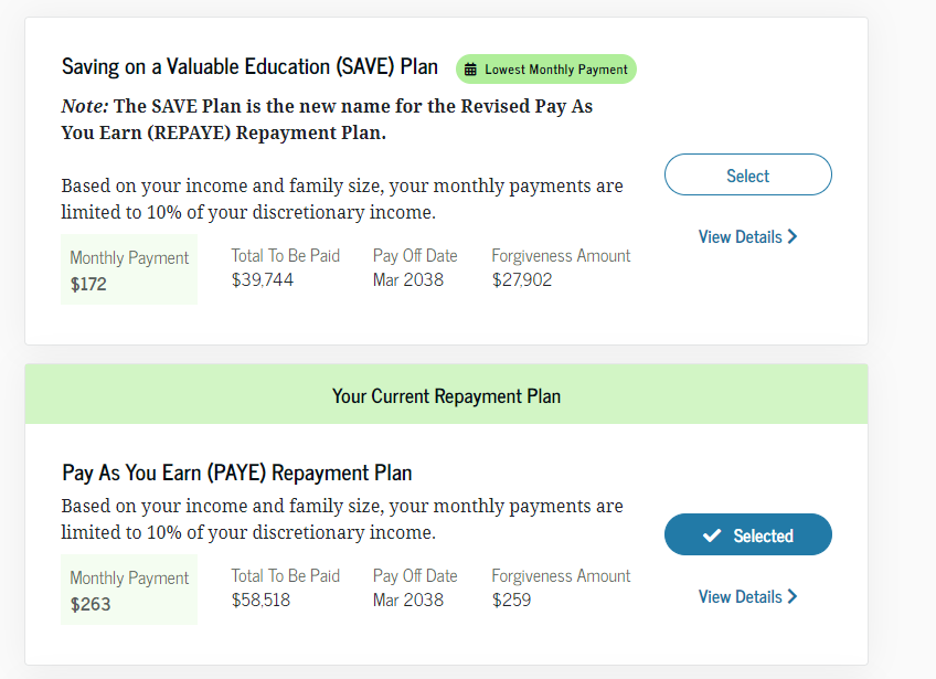 - Now go to this page!!!! and scroll down to look at your loans (you might have to make the thing expand). It will say what plan it is enrolled in. If it says it's in the REPAYE plan or the SAVE plan, then you're all good! You have nothing else to do! But if it's in something else, we got work to do! It's just a lot of clicking don't worry
