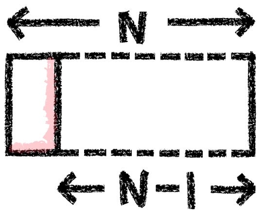 If we place a domino vertically at the end of our 2×N rectangle, we’re left with a 2×(N-1) space, which can be filled Fn-1 ways.