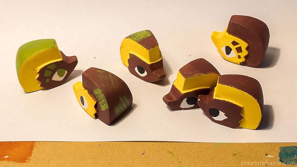 here's the first batch of six echidnas, laboriously hand-cast and painted, and each one is a little different.