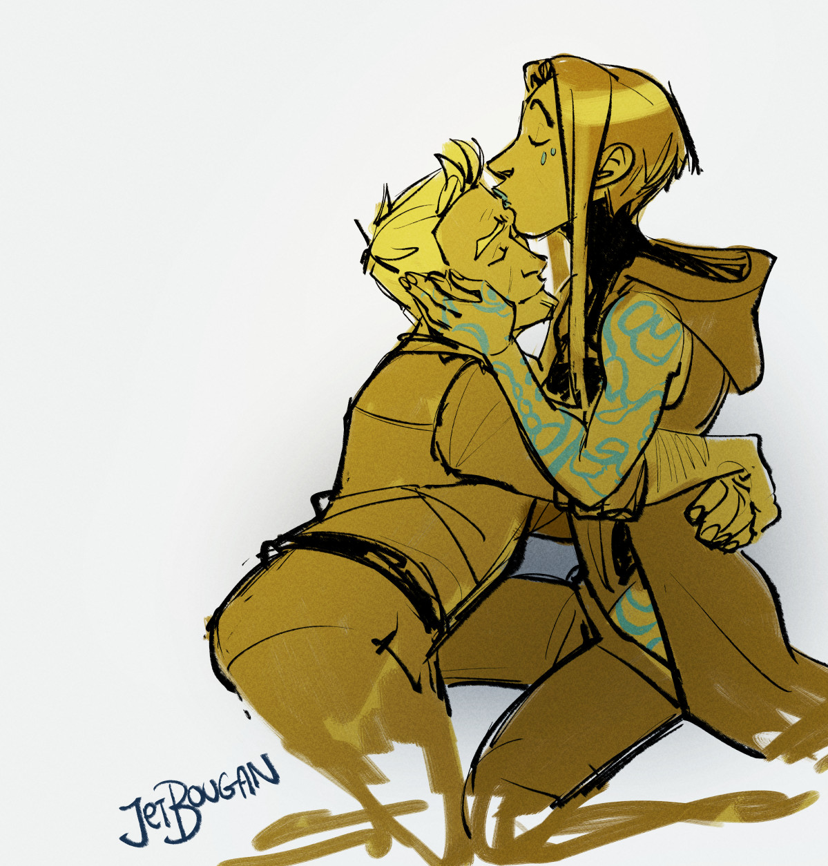 Once a year, I sell discount simplified commissions for the express purpose of drawing your faves kissing. Or not kissing - we actually operate on a loose definition of "ship" encompassing any relationships! Familial, platonic, hateshipping - it's all welcome, I love to hear about the vibes you're looking for. Also does not have to be your faves! OCs and yourself and/or partner are also okay. If I have reference, I can draw it!