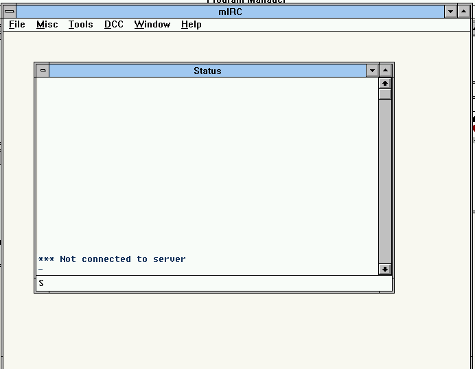 ah, mirc. i have used ircs before. pesterchum is an irc, if you're a homestuckie and used pesterchum, you've used an irc. although i have also used other irc programs, most notably, mirc. just not the dos version, the version they have available to download on their website right now. so everyone who ever says "reject discord, return to irc" can finally put their money where their mouth is. i'm of course kidding as you can complain about something but still use it because of whatever reason, for discord it's obviously that's it's what everyone else uses, and you're not going to try to make everyone use irc, you'll look like a dork, unless everyone else in your friendgroup are nerds, then it's a fun time, totally recommend. anyways ircs are neat i like them truly where you go to when discord goes down.