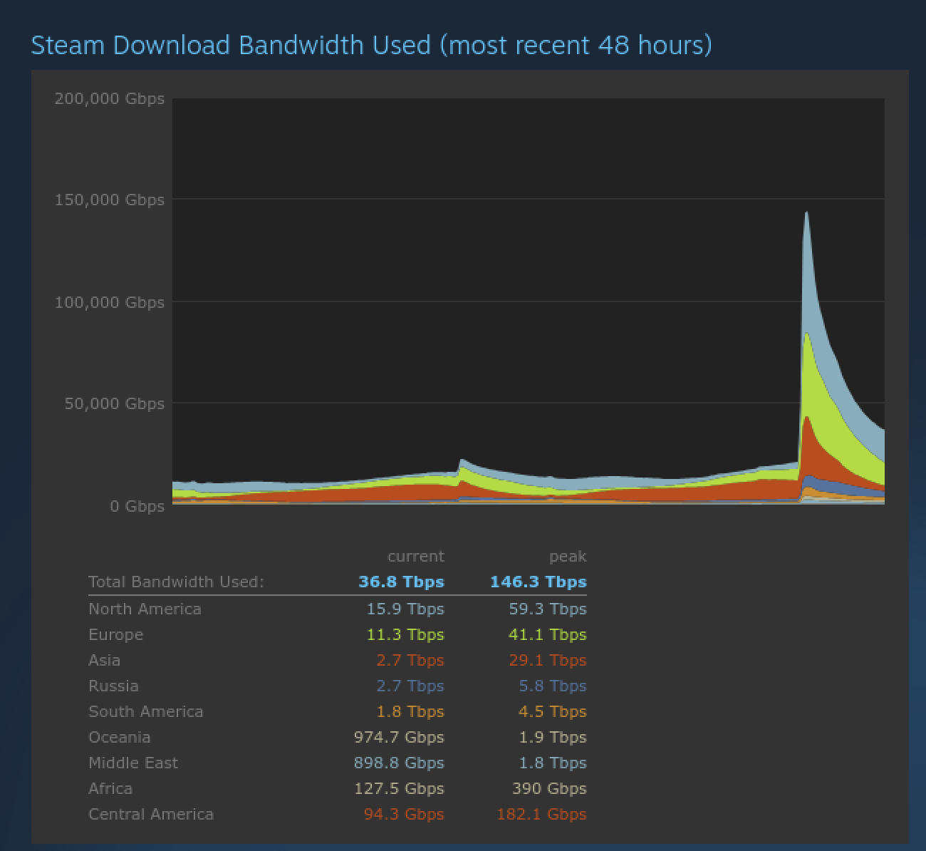weirdly, i am seeing different download bandwidth graphs on that steam page based on which computer i am using: