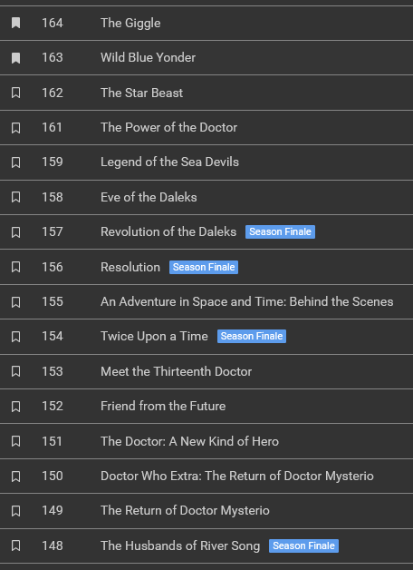 sorry to complain about my Plex server and Sonarr situation again, and really this is a Doctor Who complaint, but I think the distinction between "Seasons" and "Specials" within TV shows is fucked up, especially when it comes to places like TheTVDB. Let's look at Doctor Who (2005).