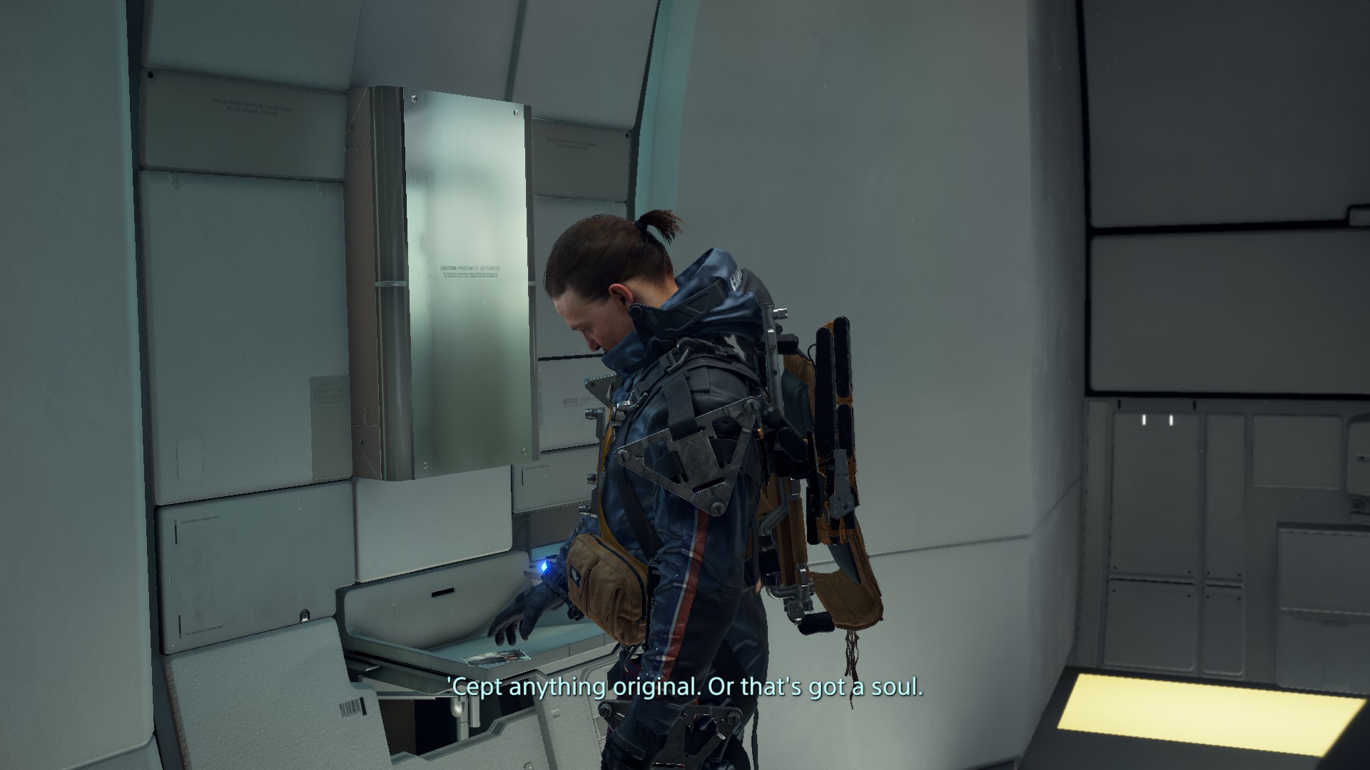 there's an incredible display of technology here propping up a rather stupid script with sort of interesting themes (i liked this part where...they're trying to convince him to connect the network so they can collect all the old data and he starts complaining about the concept like people talk about ai art currently) and some indulgences that are weird for not apparently thematic reasons (like reedus gesturing at the camera when you look at the toy soldiers behind him). that's fine. there's also some really cool and creepy imagery and that stuff doesn't have to be the high point of the game when the experience of playing it is this interesting to me. there's a feeling a bit like botw, and somewhat like from games, but it plays out really different. really lonely and meditative so far. that's the true walking simulator